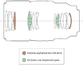 которая позволит получать выразительные портретные кадры. Оптическая схема состоит из 17 элементов в 13 группах. Включая: два
