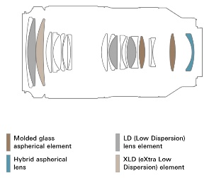 F/2.8 VR S. Как и версия для байонета Sony E, объектив предлагает оптическую конструкцию с