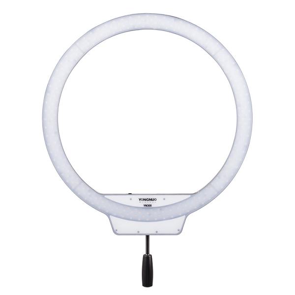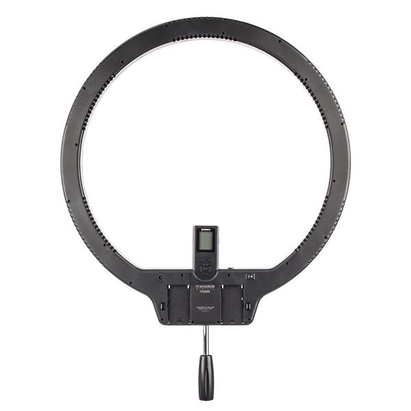 Светодиодный осветитель YongNuo YN308 Новейший светодиодный осветитель Yongnuo кольцевого типа на 304 ярких светодиодах с регулируемой цветовой температуры и пультом ДУ в комплекте. Осветитель круглой формы дает исключительно ровно и мягкое свечение, так необходимое для съемкм в портретном и каталожном жанре. Глаза фотомодели, если производится видео или фотосъемка с участием моделей из за специфической формы светящейся поверхности осветителя приобретают красивый "ангельский" вид из за отражения в них. Питания осветителя возможно как одним или двумя аккумуляторными батареями типа SONY NP (рекомендутся батареи YONGNUO NP-F750), либо блоком питания постоянного напряжения. Аккумуляторные батареи, так же как и блок питания в комплект к офсетителю не входят и приобретаются отдельно. Осветитель имеет пульт ДУ с дистанцией регулировки до 15 м. Пульт ДУ имеет многоканальное радио управление и позволяет включать / выключать осветитель ( или группы осветителей на одном канале), регулировать яркость и цветовую температуру свечения, узнавать остаточную емкость зараяда батарей. Осветитель построен на новейших светодиодах с очень высокой отдачей (коэффициэнтом преобразования электроэнергии в свет - свыше 95) и с очень высоким времени жизни (в среднем до 50000 часов). Используется традиционная дл YONGNUO система регулировки цветовой температуры - в светильнике из 304 светодиодов половина - одна группа светодиодов (152 шт.) - с цветовой температурой 3200K, другая (152 шт.) - с цветовой температурой 5500K. Пульт ДУ имеет возможность регулировки яркости этих дву групп отдельно друг от друга. Осветитель очень плоский, поэтому его можно использовать и для подсветки световых кубов не только сверху или сбоку, но даже снизу, из -под куба. Это открывает отличные возможности для испольования его и в предметной фотосъемке. В комплекте имеетя полая рукоятка, которая используется для удерживания светильника в руках или для насаживания его на студийную стойку. Технические характеристики: