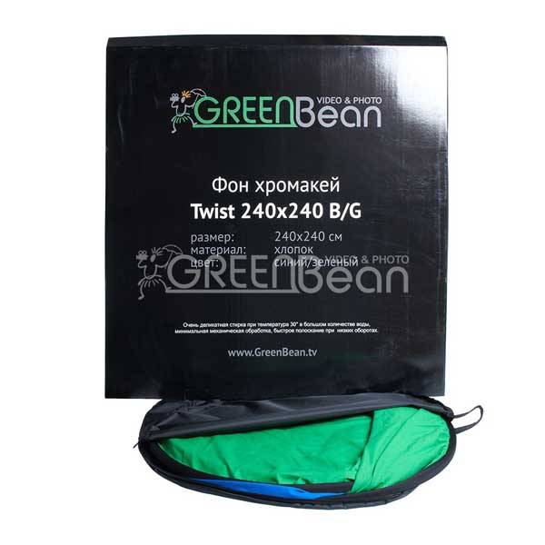 Двухсторонний тканевый фон хромакей GreenBean Twist 240 х 240 B/GДвухсторонний фон хромакей GreanBean Twist 240×240 B/G предназначен для фото и съемки, когда при записи сцены или для последующего монтажа необходимо вместо фона поместить другое изображение. С одной стороны зеленый, с другой стороны синий — это даст универсальную возможность съемки объектов любого цвета (к примеру, при съемке зеленых растений целесообразнее использовать синий фон). Фон на жестком и упругом складном каркасе — в считанные секунды готов к работе, предупреждает образование складок и бликов влияющих на цветовой тон. Каркас также служит опорой, фон можно использовать без дополнительной системы крепления, например, прислонив к стенке. Размер в рабочем состоянии 240×240 см — позволит использовать его для большинства сцен, диаметр в сложенном состоянии — 92 см. Стойкая к истиранию ткань легко чистится. В комплект входит чехол для хранения и транспортировки.Характеристики