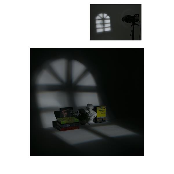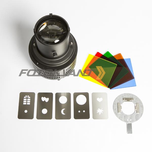 Fotokvant RO-02 - оптический рефлектор для создания световых эффектов. Представляет из себя оптическое приспособление, набор трафаретов и цветных фильтров (масок Гобо) (толщиной примерно 1,5 мм) для создания светотеневых эффектов в художественной фотографии. Байонет - Bowens. |