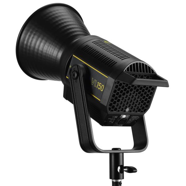 Осветитель светодиодный Godox VL150Осветитель светодиодный Godox VL150 - это легкий (весом менее 2 кг) и компактный светодиодный источник света, подходящий для освещения при проведении портретной, предметной, интерьерной фотосъемки, а также для съемки видеороликов. Круглая COB LED-матрица осветителя выдает сбалансированный дневной свет мощностью 150 Вт с индексом цветопередачи CRI≥96 и TLCI≥95 и цветовой температурой 5600 К, обеспечивая высокоточную цветопередачу и реалистичные цвета. Мощность осветителя регулируется от 0 до 100% с шагом 1% - вы точно подберете необходимое количество света для вашей задачи. Максимальная освещенность на расстоянии 1 метр без рефлектора - 6400 лк. Осветитель VL150 управляется и питается от внешнего блока управления (контроллера), что делает его компактным, легким, автономным и простым в управлении. Питание осуществляется от сети (сетевой адаптер входит в комплект) или от аккумуляторной батареи типа V-mount (приобретается отдельно). Панель управления, расположенная на корпусе контроллера, с интуитивно понятным интерфейсом, состоящая из двух кнопок и вращающегося диммера для регулировки светового потока и настройки радиоканала. Установленные параметры отображаются на жидкокристаллическом дисплее с подсветкой. Настройка параметров также может осуществляться по беспроводной сети 2.4ГГц (Godox X) с помощью прилагаемого пульта дистанционного управления или же с помощью мобильных устройств (смартфонов, планшетов) с поддержкой Bluetooth и установленным бесплатным приложением GodoxPhoto (iOS/Android). Для этого на корпусе контроллера размещены специальные антенны для лучшего приема сигнала. Осветитель настраивается на работу на одном из 16 каналов в 6 группах (A, B, C, D, E, F). Возможно управлять одновременно несколькими осветителями, работающими в группе, выбрав наиболее свободную частоту без помех. Аккумуляторная площадка, расположенная на корпусе контроллера, позволяет питать устройство от литиевых батарей типа V-mount там, где нежелательно использовать сетевые кабели или нет постоянных источников питания. Осветитель оснащен бесшумным вентилятором, который не беспокоит во время фотосъемки и дает производить запись звука во время видеосъемки. К корпусу осветителя присоединен металлический кронштейн-лира для крепления на стойку со шпиготом 5/8” или перекладину, в вертикальном или горизонтальном положении. Угол наклона осветителя регулируется при помощи крупной ручки-барашка и «трещотки», исключающей случайное проворачивание. Встроенный байонет Bowens дает возможность использовать различные светоформирующие насадки помимо рефлектора, входящего в комплект. Комплектный рефлектор с фактурной внутренней поверхностью серебристого цвета, собирает световой поток, делая его более точечным и направленным. В комплект входит полужесткая сумка для хранения и транспортировки осветителя. Комплектация