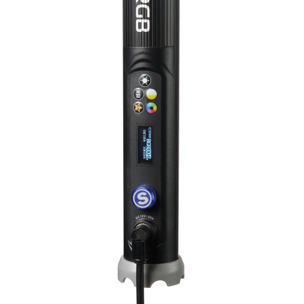 Осветитель светодиодный GreenBean LedFlow 4ft RGB (BP) со встроенным аккумуляторомОсветитель GreenBean LedFlow 4ft RGB (BP) — легкая светодиодная труба в алюминиевом корпусе мощностью 30 Вт, дающая яркий световой поток освещенностью 900лк (на расстоянии 1 метр) в режиме Bi-color (биколор) или освещение в полном цветовом спектре RGB, а также создающая различные цветосветовые эффекты для видео-, кино- и фотосъемки.Осветитель можно эффектно использовать при производстве игрового кино, рекламных видеороликов и музыкальных клипов. Отлично подходит для освещения на съемке в узких помещениях и транспортных средствах, на сцене во время концерта или спектакля. При помощи нескольких осветителей можно создавать различные декоративные световые фигуры: треугольник, квадраты, ромбы и другие многоугольники, создавая уникальные сценические эффекты. Режимы работы осветителя GreenBean LedFlow 4ft RGB (BP) Bi-color (биколор) - регулируемая цветовая температура изменяется от 2700 до 6500К. Шаг изменения цветовой температуры 100 К или 400 К (режим меняется нажатием одной кнопки). Яркость освещения меняется от 0 до 100% с шагом 1% или 4%. В режиме биколор задействованы 110 групп сдвоенных светодиодов теплого и холодного белого света. Также возможно дополнительное подключение цветных светодиодов для увеличения яркости освещения. RGB — цветное освещение в полном спектре RGB. В режиме RGB задействованы 109 цветных светодиодов. Светоцветовые эффекты — выбор из 9 возможных вариантов: имитация освещения от полицейской машины, с эффектом затухания, стробоскопа, цветомузыки, сменяющихся цветов. Спецэффекты воспроизводятся со скоростью, задаваемой пользователем. Панель управления, расположенная на корпусе осветителя, позволяет менять такие параметры как яркость осветителя, цветовая температура; оттенок, насыщенность и интенсивность цветного освещения; выбор и управление предустановленными светоцветовыми эффектами ; номера радиоканала. Параметры осветителя устанавливаются при помощи 5 пыле-влагозащищенных кнопок и вращающейся кнопки-мультиселектора, расположенных на корпусе осветителя с обратной стороны. Интуитивно-понятный интерфейс дает возможность быстро сменить режим освещения или установить спецэффекты. Над клавиатурой расположен OLED-дисплей с высоким разрешением размером 2.5х1 см - достаточно крупный с четкими символами, отображающий установленные параметры. Благодаря встроенному аккумулятору осветитель не требует постоянного подключения к сети и может использоваться удаленно от источников питания как портативный источник света. Зарядка аккумулятора осуществляется от комплектного сетевого адаптера. Осветитель может работать и заряжаться одновременно. Кнопка включения/выключения осветителя в режиме питания от аккумулятора находится на торце осветителя. Время работы осветителя от аккумулятора составляет 2 часа на полной мощности (в помещении при комнатной температуре). Осветитель предусматривает возможность дистанционного радиоуправления 2,4ГГц с помощью пульта GreenBean LedFlow RC RGB (приобретается отдельно). Номер радиоканала выбирается от 0 до 16, одним пультом управления может регулироваться несколько осветителей как на одном, так и на разных каналах. Панель управления пульта дублирует панель управления осветителя. Осветитель LedFlow 4ft RGB (BP) может закрепляться на осветительной стойке с помощью д