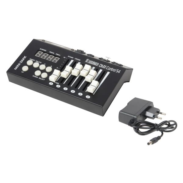 Пульт GreenBean DMX Control 54 предназначен для управления осветительными и другим студийным оборудованием по протоколу DMX 512, позволяет управлять одновременно 9 приборами по 6 каналам управления, где каждый канал — это отдельный параметр управления. К примеру, запуск дым-машины, яркость освещения или цветовая температура в биколорных источниках света, режим стробоскопа или цвет освещения в RGB LED-осветителях, прожекторах и т.д. С этого пульта вы сможете менять яркость освещения и запускать светоцветовые схемы дистанционно. Производитель светового оборудования не имеет значения, достаточно чтоб оборудование поддерживало протокол DMX 512. К примеру, осветители светодиодные GreenBean LedFlow 4х2ft DMX , GreenBean Fresnel 200 LED X3 DMX, StudioLight 300 LED DMX поддерживают протокол DMX. Крупный 4-разрядный LCD-дисплей размером 32х16 мм помогает пользователю настроить необходимые параметры и управлять оборудованием в ручном режиме или режиме программного управления. Возможно одновременное ручное управление в режиме Select. Питание пульта DMX осуществляется от стандартной сети 220В, сетевой адаптер =9В входит в комплект. В случае прекращения питания пульт управления может питаться от батареи 6LR61 и проработать еще около 4 часов. На тыльной стороне пульта DMX расположен тумблер переключения питания (включения/выключения сети), два разъема DMX (3-pin male/female) для подключения различного оборудования и гнездо питания DC. Компактный пульта DMX в алюминиевом корпусе размером 20.0х12.5х5.0 см можно держать в руке, перемещаясь по помещению, или установить на стол. Вес пульта не превышает 0.7 кг. Для беспроводного управления приборами с этого пульта следует приобрести DMX передатчик и DMX приемники, например GreenBean AirDMX 512R PRO или GreenBean AirDMX 512T PRO. Особенности