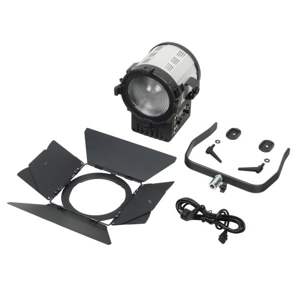 Осветитель студийный GreenBean Fresnel 200 RGB X3 DMXОсветитель светодиодный с линзой Френеля GreenBean Fresnel 200 RGB X3 DMX позволяет получить направленный равномерный «цветной» или «белый» световой поток с возможностью изменения диаметра пучка, электронным управлением мощностью и DMX-управлением.Применяется в качестве источника основного рисующего и контурного света, освещения фона, создания бликов, акцентирования деталей в студийной видеосъемке, съемке кинофильмов или ТВ-передач. Встроенные цвето-световые динамические спецэффекты помогут создать необходимое креативное освещение на театральной сцене или съемочной площадке. Высокое значение коэффициента цветопередачи (CRI>96) позволяет использовать данные осветители в профессиональной видеосъемке, кинопроизводстве и сценическом освещении. Цветное освещение RGB/HUE – 16 миллионов цветов RGB COB светодиодная матрица предоставляет режим цветного освещения RGB/HUE для доступа к 16 миллионам цветовых комбинаций и дополнительный режим имитации 22 гелевых светофильтров. Регулируемая цветовая температура от 2800 до 6500K Цветовая температура светового потока в режиме CCT регулируется в широком диапазоне от 2800 до 6500K с шагом 100К. Это позволяет смешивать световой поток GreenBean Fresnel 200 RGB X3 DMX с другими естественными и искусственными источниками освещения, а также подбирать настройки исходя из творческих замыслов. Для более точной подстройки цветовой температуры, существует режим CCT HUE SHIFT чтобы точнее настроить баланс Green/Magenta. Оптическая схема с линзой Френеля и конденсором Особенностью данной модели является новая оптическая схема: на светодиоде установлена дополнительная асферическая линза-конденсор, которая направляет на линзу Френеля до 97% исходящего от светодиода светового потока и увеличивает эффективность прибора. Также линза-конденсор защищает светодиод от грязи, пыли и влаги, что помогает увеличить срок эксплуатации прибора. Линза Френеля обеспечивает преломление и равномерное распределение знергии света внутри выходящего светового потока. Технология DMX512 Данный осветительный прибор поддерживает технологию DMX управления. Основное преимущество управлением света по DMX технологии - это возможность программирования любой сложности сценариев освещения и передача сигнала на большие расстояния (до 100 м) без потери мощности. Осветитель оборудован DMX декодером, адрес канала устанавливается кнопками на панели управления и отображается на ЖК дисплее. Фокусировка светового пучка Сзади на торце прибора находится рукоятка фокусировки светового пучка, которая перемещает светодиод с асферической линзой вдоль оптической оси линзы Френеля, благодаря чему регулируется ширина светового пучка. Фокусировка от положения рассеянного пучка 65˚("flood") до положения узкого пучка 25˚("spot") происходит за 5 оборотов рукоятки, благодаря чему можно получить очень точный размер светового пятна. Интеллектуальная система охлаждения Светодиодные осветители в отличие от галогенных не излучают избыточной тепловой энергии. Отсутствие прямого тепла значительно снижает расходы студии на кондиционирование воздуха и позволяет снизить температуру рабочей среды. Осветитель имеет встроенную интеллектуальную защиту от перегрева, светодиод автоматически отключится, когда внутренняя температура превысит максимальное значение, при 
