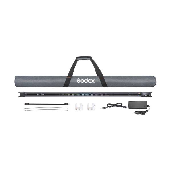 Осветитель светодиодный Godox TL120Мощный светодиодный осветитель Godox TL120 выдает яркий световой поток в режиме bi-color или RGB/HIS, а также выполняет предустановленные световые сценарии для создания креативного освещения при съемках фото или видео. Появление светодиодной трубки Godox TL120 пополнило линейку осветителей Godox TL, в которую уже входят Godox TL60. Осветитель Godox TL120 сохранил достоинства предыдущих моделей и получил большую длину и яркость, которые востребованы среди производителей видеоконтента.Творческие режимы работы (CCT, RGB, HIS, Gel и FX) В зависимости от творческих задач, можно подобрать естественное «дневное» или «искусственное» освещение с регулируемой цветовой температурой от 2700 до 6500К в режиме CCT, цветное освещение режиме RGB/HIS (более 36 000 цветов), имитации гелевых (фолиевых) фильтров Gel. Встроенный в осветитель режим спецэффектов FX позволяет выполнять заданный динамический световой сценарий (полицейская машина, мерцание свечи, дискотека, режим светомузыки в реальном времени и др.), чтобы разнообразить картинку или создать настроение в кадре. Интуитивно понятное управление Осветитель имеет простое, интуитивно понятное управление, которое производится при помощи панели управления на корпусе осветителя или дистанционно. Установленные параметры отображаются на ярком LCD-дисплее. Простое управление на расстоянии до 50 метров Осветителем TL120 управляется на расстоянии до 50 метров с помощью смартфона с предустановленным приложением Godox Light, пульта дистанционного управления Godox RC-R9 (приобретается отдельно) или DMX-контроллера. Пользователь получает свободу действия без ограничения проводами. Мобильное приложение Godox Light предоставляет доступ к дополнительным настройкам параметров устройства – в режиме Color picker цвет светового потока выбирается по фотографии. Яркий световой поток доступный повсюду Компактные размеры осветителя и встроенный аккумулятор позволят использовать его в любом месте, где есть необходимость в ярком творческом свете. Световая трубка Godox TL120 подойдет для создания освещения на съемочной площадке игрового и документального кино, видеоклипов, стримингов и многого другого. Эргономичная трубчатая форма и световые схемы Эргономичная трубчатая форма осветителя подходит для создания глубокого пространства в кадре даже в стесненных условиях съемочной площадки. Осветитель может использоваться в качестве фоновой и точечной подсветки, а также выступать в качестве съемочного атрибута. Осветители можно устанавливать в практически любом месте и собирать из них разнообразные формы. Осветитель длиной 117 см и весом всего 1.27 кг можно держать в руке или закреплять на клейкую ленту – тейп. В комплект входят два пластиковых зажима-клипа, которые помогут установить устройство на осветительную стойку или держатель с резьбой ¼'', и два металлических тросика для страховки или закрепления. Длительное время автономной работы Встроенного литий-ионного аккумулятора хватит на 150 минут автономной работы на 100% яркости при 100% заряде батареи. Беспрерывная работа осветителя будет дольше в режиме спецэффектов или если яркость светового потока не будет уменьшена. Для проведения более длительной съемки осветитель может питаться от стандартной сети 220В при помощи штатного сетевого адаптера. Дополнительные аксессуары Дополнительно прио