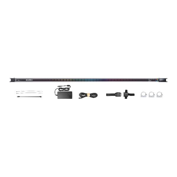 Осветитель светодиодный Godox TL180 RGBНовый светодиодный осветитель Godox TL180 получил большую площадь свечения и мощность по сравнению с предшественниками (Godox TL30, Godox TL60, Godox TL120). Он выдает еще более яркий световой поток в режиме bi-color или RGB/HIS, а также выполняет предустановленные световые сценарии для создания креативного освещения при съемках фото или видео.Осветитель TL180 обеспечивает еще более впечатляюще визуальное воздействие, особенно подходит для художественного освещения масштабных сцен или создания световых эффектов. Устройство также может использоваться в качестве основного или заполняющего света для относительно высоких и больших пространств, поскольку длина излучения может покрывать весь объект мягким и ровным светом без жестких светотеневых переходов. Творческие режимы работы (CCT, RGB, HIS, Gel и FX) В зависимости от творческих задач, можно подобрать естественное «дневное» или «искусственное» освещение с регулируемой цветовой температурой от 2700 до 6500К в режиме CCT, цветное освещение режиме RGB/HIS (более 36 000 цветов), имитации 40 гелевых «фолиевых» фильтров Gel. Встроенный в осветитель режим спецэффектов FX позволяет выполнять заданный динамический световой сценарий. 14 категорий световых эффектов включает 2-3 варианта, что в общей сложности позволяет имитировать 39 специальных эффектов(полицейская машина, мерцание свечи, дискотека, режим светомузыки в реальном времени и др.), чтобы разнообразить картинку или создать настроение в кадре. Интуитивно понятное управление Осветитель имеет простое, интуитивно понятное управление, которое производится при помощи панели управления на корпусе осветителя или дистанционно. Установленные параметры отображаются на ярком LCD-дисплее. Простое управление на расстоянии до 50 метров Осветитель TL180 управляется на расстоянии до 50 метров с помощью смартфона с предустановленным приложением Godox Light, пульта дистанционного управления Godox RC-R9 (приобретается отдельно) или DMX-контроллера. Пользователь получает свободу действия без ограничения проводами. Мобильное приложение Godox Light предоставляет доступ к дополнительным настройкам параметров устройства – в режиме Color picker цвет светового потока выбирается по фотографии. Яркий световой поток доступный повсюду Компактные размеры осветителя и встроенный аккумулятор позволят использовать его в любом месте, где есть необходимость в ярком творческом свете. Световая трубка Godox TL180 подойдет для создания освещения на съемочной площадке игрового и документального кино, видеоклипов, стримингов и многого другого. Эргономичная трубчатая форма и световые схемы Эргономичная трубчатая форма осветителя подходит для создания глубокого пространства в кадре даже в стесненных условиях съемочной площадки. Осветитель может использоваться в качестве фоновой и точечной подсветки, а также выступать в качестве съемочного атрибута. Осветители могут устанавливаться в практически любом месте и собираться в разнообразные световые схемы. Осветитель длиной 180 см и весом всего 2.21 кг легко удерживается в руке или закрепляется на осветительной стойке. Для этого комплект входят три металлических зажима-клипа, которые помогут установить устройство на любом держателе (с резьбой ¼''), и два металлических тросика для страховки или подвешивания. Также можно использовать держател