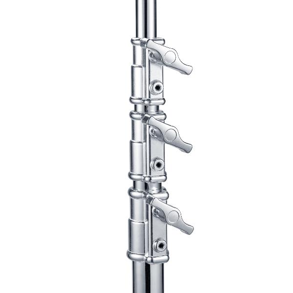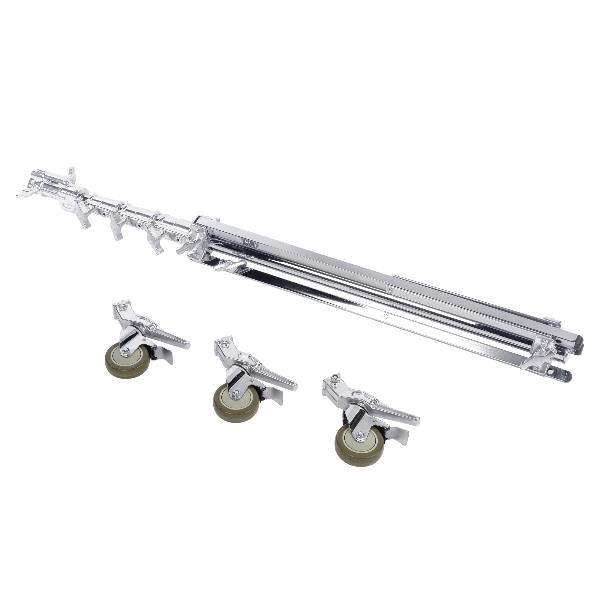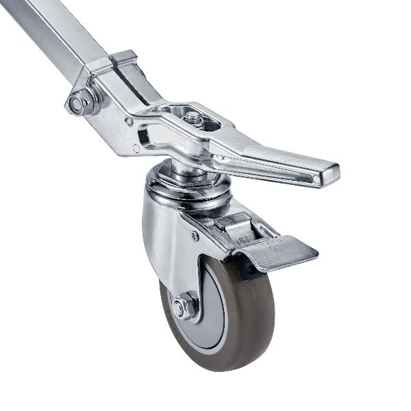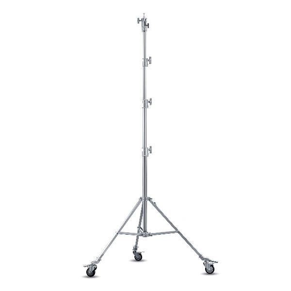 Стойка Godox SA5045 на колесахСтойка Godox SA5045 на складной колесной опоре позволяет надежно устанавливать и легко перемещать различные студийные осветительные приборы весом до 40 кг. Очень прочная и устойчивая стальная стойка может использоваться как в студии, так и на любой съемочной площадке, в том числе под открытым небом.Godox SA широко применяются для установки источников постоянного света в муфту с креплением 1-1/8" Junior на конце стойки. Также благодаря выдвижному поворотному штифту 5/8", можно закреплять различное дополнительное оборудование и аксессуары – рассеиватели, флаг-панели и т.д. Высота стойки в рабочем состоянии от 146 см до 450см обеспечивается выдвижением телескопической секции колонны с усиленными винтовыми зажимами. Секции колонны изготавливаются из трубы большого диаметра 30, 36, 42 и 48 мм, обеспечивающими высокую грузоподъемность. Секции оснащены пружинным амортизатором, который дает возможность безопасно поднимать и опускать установленное оборудование на необходимую высоту, не опасаясь последствий падения оборудования из-за случайного ослабления зажимов. Конструкция одной из трех ножек помогает выравнять стойку на рельефной или наклонной поверхности. Нагруженную стойку просто переместить благодаря устойчивой колесной опоре с тремя колесами с тормозным механизмом. Большие легко вращающиеся колеса Ø100 мм оснащены с подшипниками и резиновым протектором, чтобы преодолеть такие препятствия, как кабель-каналы или другие неровности. Тормозной механизм убережет стойку от случайного перемещения. Мобильная стойка в сложенном виде имеет длину всего 90 см, подходящую для компактного хранение и перевозки. Особенности