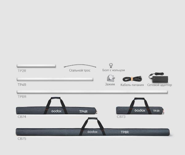 Godox Knowled TP2R/TP4R/TP8RGodox Knowled TP2R/TP4R/TP8R - это инновационный пиксельный осветитель, который позволяет оживить сюжет и создать нужное настроение в кадре. Он способен воспроизводить множество цветов и различных динамических цветовых комбинаций, что открывает новые горизонты для вашего творчества. Световое полотно осветителя TP-R сконструировано по принципу пиксельной матрицы, что обеспечивает независимые световые зоны. Осветитель доступен в различных вариантах по длине, что позволяет выбрать подходящую модель для вашего проекта. Серия осветителей TP-R от Godox поможет вам достичь нового уровня мастерства.Высокая плотность пикселей Плотное расположение пикселей (световых зон) поможет создать реалистичные сюжеты. Благодаря возможности независимого управления большим количеством отдельных световых зон, обеспечивается более плавное движение цвета для имитации реального перемещения света и его более точного расположения. Кроме того, вы можете программировать параметры пикселей при помощи трёх встроенных эффектов, включая последовательного пробегания светового пучка для имитации преследования, плавного изменения цвета и яркости для имитации потока воды, огня, молнии и т.д., эффект затухания для плавного изменения яркости светодиодной лампы от минимального до максимального значения или наоборот. Модификации для разных задач Осветители поставляются в трех различных размерах: TP2R - 60см, TP4R - 120см и TP8R - 240см (будет доступен позже). TP2R можно легко разместить в любом месте площадки. TP4R позволяет создавать разнообразные художественные образы. С помощью TP8R можно заполнить впечатляющим эффектным светом все пространство. Работая с осветителями трех размеров, вы можете создавать разнообразные захватывающие композиции и креативнее подходить к освещению сюжета. Различные методы управления Доступно несколько методов управления параметрами осветительного оборудования: беспроводное управление с использованием CRMX, проводное управление через DMX-контроллер, а также современное приложение для мобильных устройств Godox Light 3.0. Встроенный беспроводной модуль DMX от LumenRadio обеспечивает удобство в управлении освещением и позволяет работать вместе с другими профессиональными осветительными приборами в рамках одной системы управления. Пиксель-маппинг для реалистичных сюжетов Возможность маппинга световых зон осветителя значительно упрощает процесс создания реалистичных световых сценариев. С помощью специализированного программного обеспечения, предназначенного для проекции видео на группу пиксельных осветителей, можно добиться световых эффектов, которые недоступны для традиционных осветительных приборов. Маппинг позволяет добиться естественных и плавных колебаний света и теней на освещаемых объектах. Точная настройка Для контроля над количеством используемых каналов управления вы можете переключаться между режимами 8 и 16 бит. Режим 8 бит подходит в случае, когда количество каналов ограничено, и вам необходимо управлять большим числом осветительных приборов. В то же время, 16-битный режим оказывается полезным, если вы отдаёте предпочтение более точному контролю над цветом и яркостью. Долой скучный свет За счет регулировки цветовой температуры в диапазоне от 2000K до 10000K с шагом 100K и возможности настройки оттенка от 0° до 360°, вы получаете к