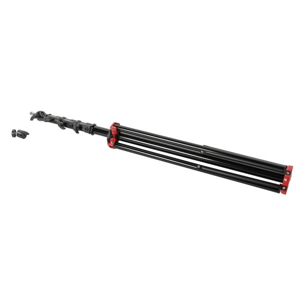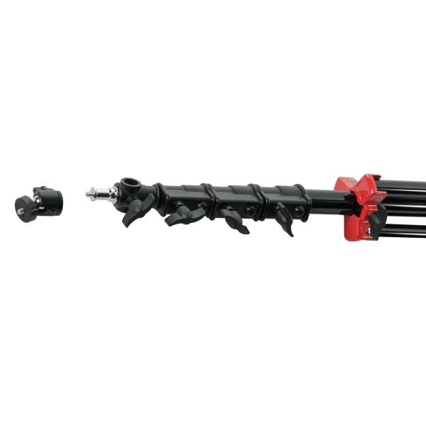 Стойка-тренога Falcon Eyes FEL-3050A/BFalcon Eyes FEL-3050A/B – усовершенствованная версия популярной стойки FEL-3050A/B.0 с шаровой мини-головкой для установки цифровых фото и видеокамер. Телескопическая стойка высотой до 300 см с воздушной амортизацией может использоваться для съемок в студии и на улице.Телескопическая колонна с усиленными зажимами Центральная колонна стойки состоит из четырех секций разного диаметра — 19, 22, 25 и 30 мм, изготовленных из легкого и прочного алюминиевого сплава. Большой диаметр секций обеспечивает высокую жесткость и устойчивость конструкции. Секции соединяются усиленными алюминиевыми зажимами, которые гарантируют прочную фиксацию и выдерживают осевую нагрузку до 9 кг, что превышает показатели предшественника (до 7 кг). Каждая секция оснащена системой воздушной амортизации, которая способствует плавному и контролируемому опусканию колонн. Воздушная амортизация надежно защищает как оборудование, так и пользователя от любых повреждений, вызванных внезапным ослаблением фиксаторов секций. Регулируемая высота стойки Высота стойки плавно изменяется в диапазоне от 107 до 300 сантиметров благодаря телескопическому выдвижению секций центральной колонны. Степень устойчивости и общая высота изделия дополнительно регулируется положением центральной колонны и ног основания. Складная тренога с растяжкой Основание стойки представляет собой складную треногу с винтовым фиксатором. Максимальный размах ножек достигает 106 см, обеспечивая надежную опору для крепления оборудования. Ножки стойки стабилизированы специальной алюминиевой растяжкой, повышающей общую устойчивость конструкции. При съемке в сложных условиях можно закрепить на основании стойки дополнительный груз, например, мешок Falcon Eyes SP-BG11, заполненный песком. Ножки треноги изготовлены из алюминиевых труб диаметром 22 мм и снабжены практичными резиновыми наконечниками, которые улучшают сцепление с любой поверхностью, включая неровности и гладкие покрытия. Крепление для камеры Фото- или видеокамеру можно установить на стойку с помощью универсального съемного адаптера диаметром 5/8 дюйма (16 мм) с резьбовым соединением 1/4 дюйма и 3/8 дюйма. Шпигот может устанавливаться горизонтально, что дополнительно расширяет возможности крепления оборудования. Для регулировки угла съемки используется шаровая мини-головка, позволяющая быстро настраивать наклон установленного оборудования и выбирать оптимальный ракурс. Надежное исполнение Стойка FEL-3050A/B отличается высоким уровнем исполнения. Все ключевые элементы конструкции — колонны, крестовины и узлы крепления — выполнены из алюминиевого сплава, что обеспечивает легкость и долговечность службы изделия. Черное покрытие деталей защищает поверхность стойки от механических повреждений, сохраняя первоначальный эстетический вид. Конструкция стойки рассчитана на длительную интенсивную эксплуатацию профессиональными фотографами и операторами, которым необходимо регулярно перевозить и устанавливать оборудование. Высокая портативность Прочная стойка FEL-3050A/B имеет оптимальный для своей длины вес — всего 1,8 кг. В сложенном виде она занимает длину 95 см, что удобно для транспортировки и хранения. Пользователи, которые часто работают вне студии, оценят специализированную сумку Falcon Eyes LSB-40 PRO, вмещающую до трех таких стоек о