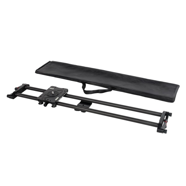 Слайдер GreenBean Glide Track 80CGreen Bean Glide Track 80C – механический карбоновый слайдер для плавного движения камеры вдоль направляющих длиной 780 мм. Глайдтрек предназначен для установки цифровой камеры весом до 7 кг с монтажным отверстием 3/8".Мобильный слайдер Glide Track 80C – необходимый инструмент для плавного панорамирования при рекламной, пейзажной, предметной, интерьерной видеосъемке или макрофотосъемке. Глайдтрек обеспечивает качественную стабилизацию при съемке с плавным наездом и отъездом, а также при горизонтальных, вертикальных и наклонных проездах камеры. Легкие карбоновые направляющие Слайдер для видеосъемки имеет легкий вес за счет карбонового исполнения направляющих. Рельсы длиной 780 мм расположены на расстоянии 94 мм (по оси друг от друга). За счет оптимальной длины направляющих слайдер может применяться как в помещении, так и на выездных съемках. Широкая каретка для крепления камеры На широкой каретке габаритами 150х110 мм расположен винт 3/8" для крепления камеры, шесть отверстий с резьбой 1/4" для установки дополнительного оборудования и два пузырьковых уровня. Плавное перемещение платформы по направляющим обеспечивается роликами каретки с качественными шарикоподшипниками. Стопор каретки позволяет зафиксировать ее в определенном положении, а резиновые упоры на торцевых основаниях предотвращают жесткие удары в крайних положениях платформы. Регулируемые опоры Ножки слайдера регулируются по высоте и поворачиваются на 360˚ вокруг оси крепления. Они соединяются с основанием с помощью зубчатой муфты, препятствующей проскальзыванию. В узле крепления ножки находится прижимная пружина, если ослабить зажим, то ножка не потеряет своего положения, но позволит отклонить ее ступенчато через зубчатый механизм. На концах ножек расположены вывинчивающиеся на 25 мм резиновые наконечники. Различные варианты установки Рельсовая система может быть установлена на один или два штатива, а также на стол или землю. К направляющим слайдера снизу прикреплена монтажная площадка с резьбовым отверстием 3/8" для установки на штатив, например на карбоновый видеоштатив GreenBean VideoMaster 307C. Также возможна установка глайдтрека на два штатива, для этого на торцевых основаниях снизу предусмотрены отверстия с резьбой диаметром 3/8". Удобно хранить и брать с собой Glide Track 80C упакован в плотную сумку-чехол, поэтому его удобно хранить и брать с собой на выездные съемки. Комплектация
