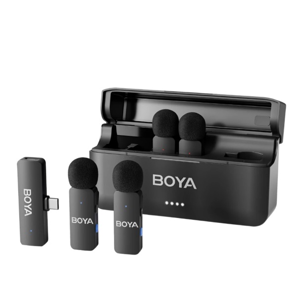 Микрофонная радиосистема Boya BY-V4UНадежная многоканальная записьСистема Boya BY-V4U обеспечивает одновременную работу с 4 передатчиками на расстоянии до 200 метров - решение для групповых интервью и мероприятий. Цифровая передача 2.4 ГГц с автоматическим выбором каналов исключает помехи, сохраняя чистоту звука даже в условиях радиоэфира Профессиональное качество в любых условиях Всенаправленные микрофоны с частотным диапазоном 20-20000 Гц и битрейтом 48 кГц/16 бит передают все нюансы голоса. Функция шумоподавления одним нажатием устраняет фоновые помехи, а возможность подзарядки во время записи делает систему идеальной для длительных мероприятий Гибкость подключения Интеграция с оборудованием через Type-C позволяет использовать радиосистему как в студии, так и в мобильной журналистике. Поворотные клипсы на 360° обеспечивают удобное крепление, а компактный зарядный кейс сохраняет порядок в комплекте при транспортировке Комплектация:
