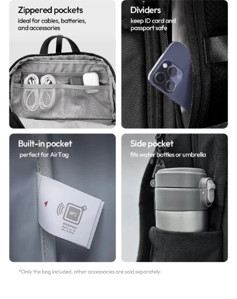 Удобная организация пространства Рюкзак F08 объёмом 20 литров оснащён системой модульной организации внутреннего пространства. Съёмная внутренняя сумка позволяет адаптировать пространство под различные сценарии использования. Специализированные отделения обеспечивают порядок при транспортировке фотооборудования, аксессуаров и личных вещей. Изолированное отделение для ноутбука до 16 дюймов с демпфирующей подкладкой дополнено системой быстрого доступа к документам через внешний карман с магнитными клапанами. Кармашек для меток вроде AirTag поможет отследить F08 в случае потери Защита и эргономика Водоотталкивающий материал внешней поверхности и герметизированные молнии обеспечивают защиту содержимого от осадков и брызг. Жёсткая задняя панель с перфорированным покрытием и регулируемые эргономичные лямки распределяют нагрузку для комфортной переноски оборудования весом до 12 кг. Усиленные зоны контакта с поверхностью повышают износостойкость конструкции. Анатомическая форма спинки с вентиляционными каналами обеспечивает циркуляцию воздуха при длительном использовании Комплектация: