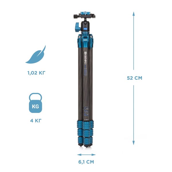 Benro TSSL08CN00P штатив Super Slim с шаровой головой/ карбоновый с цангамиСупертонкий и легкий карбоновый штатив для путешествующих фотографов BENRO Super Slim.Разработан для системных и компактных зеркальных камер со стандартным набором оптики. Комплектуется компактной шаровой головкой с двойным панорамированием. Точная настройка горизонта на любой поверхности. Фотосъемка в любой локации. От панорамы до макросъемки. Ключевые особенности: • Тонкий – в сложенном виде 6,1 см • Легкий – весит 1,02 кг • Безопасная нагрузка 4 кг • Диапазон регулировки высоты от 18 см (съемка с уровня земли) до 156 см • Шаровая головка с двойным панорамированием – точная установка штатива по линии горизонта на неровной поверхности (гора, скала, ущелье морской берег и т.п.) • Цанговые замки с защитой от пыли • Моментальная фиксация центральной колонны – быстрая установка • Двухсекционная центральная колонна – установка штатива для съемки в полный рост и с уровня земли • Площадка Arca-Swiss style - быстрая установка камеры и надежная фиксация – защита от падения • Разъемы для дополнительного оборудования (смартфон, монитор, микрофон, свет и пр.) • 3 угла наклона ног – установка штатива в любом месте (гора, скала, ущелье морской берег и т.п.) СУПЕРТОНКИЙ И УСТОЙЧИВЫЙ Особая форма центральной колонны, обновленная конструкция цанговых замков, ноги из восьмислойного карбона 8Х, литой хаб позволили сделать супертонкий, и одновременно устойчивый и прочный штатив. УДОБНО ДЕРЖАТЬ В РУКЕ В сложенном виде диаметр штатива BENRO Super Slim всего 6,1 см. Удобно переносить в руке. Легко поместится в любой рюкзак или наружный карман. ОТ ПАНОРАМЫ ДО МАКРО Широкий диапазон регулировки высоты 18-156 см позволяет комфортно снимать в полный рост и проводить съемку с уровня земли. МОМЕНТАЛЬНАЯ ФИКСАЦИЯ ЦЕНТРАЛЬНОЙ КОЛОННЫ Моментальная система зажима центральной колонны, одно движение и выбранное положение надежно зафиксировано. СЪЕМКА С НИЗКОЙ ТОЧКИ Центральная колонна - разборная и состоит из двух секций - короткой и длинной. Ключ имеет шестигранную форму, встроен в крючок для подвески груза, расположенный снизу внутри колонны. Для съемки с минимальной высотой (к примеру, для макросъемки) нужно разобрать центральную колонну, отсоединить длинную секцию, а короткую установить на штатив, затем закрепить голову и расположить штатив на уровне земли. РАЗЪЕМЫ ДЛЯ ОБОРУДОВАНИЯ На колонне предусмотрены три резьбы ¼ дюйма для установки дополнительного оборудования (свет, микрофон, монитор и т.п.). На хабе имеется резьба 1/4 дюйма для установки различного дополнительного оборудования (свет, микрофон, монитор и т.п.). МЕТАЛЛИЧЕСКИЕ ЦАНГОВЫ ЗАМКИ Эргономичные цанговые замки с рифленой текстурированной поверхностью удобны в работе при любых погодных условиях и защищены от попадания пыли. КОНТРОЛЬ ПОЛОЖЕНИЯ КАМЕРЫ Пузырьковый уровень позволяет точно установить камеру по линии горизонта. Уровень на хабе всегда будет виден, не зависимо от размера камеры или объектива. УСТАНОВКА В ЛЮБОМ МЕСТЕ За счет 3-х положений угла наклона ног (21, 55 и 80 градусов) можно установить штатив BENRO Super Slim практически в любом месте (гора, скала, ущелье морской берег и т.п.) и провести съемку в разных жанрах от макро до панорамы. УСТОЙЧИВЫЙ НА ЛЮБОЙ ПОВЕРХНОСТИ Конусовидные резиновые опоры надежно фиксируют штатив BENRO Super Slim на неровной поверхн